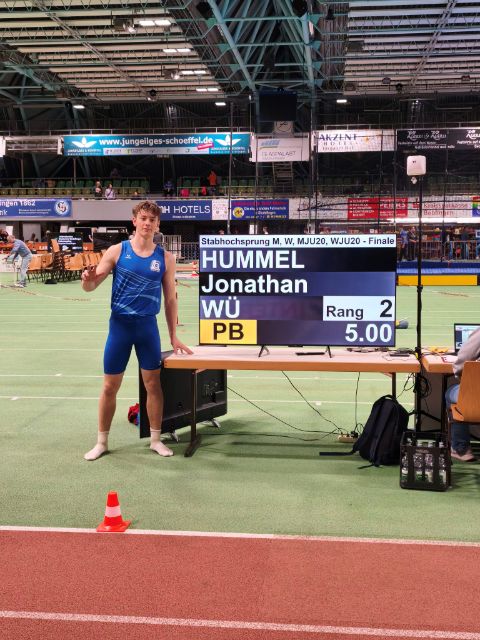 Jonathan Hummel (2009/mU18) konnte direkt im ersten Anlauf zum ersten Mal die 5,00m überqueren. 2025 hat diese Höhe für Platz 6 in Europa gereicht. Aktuell, die Saison ist noch jung, ist noch kein U18-Athlet weltweit höher gesprungen. Den Sprung findet ihr auf Instagram auf dem Kanal: polevault.flyhigh